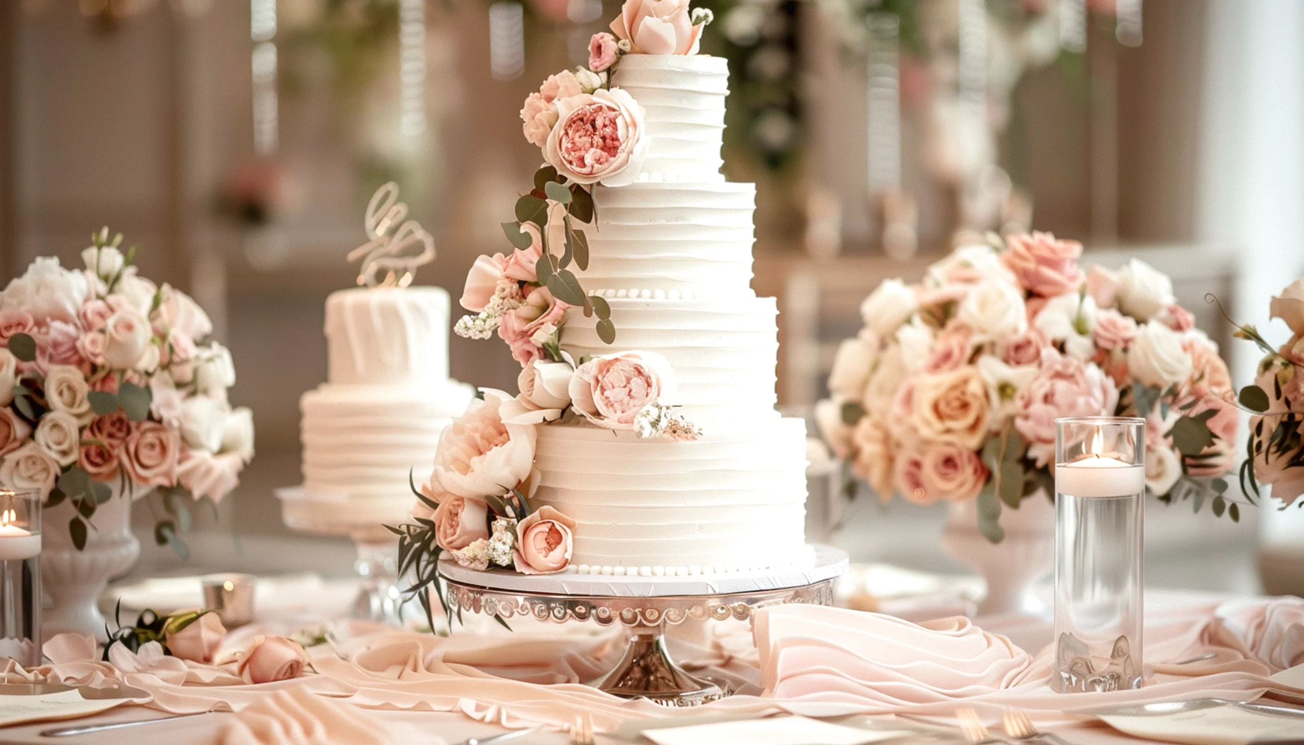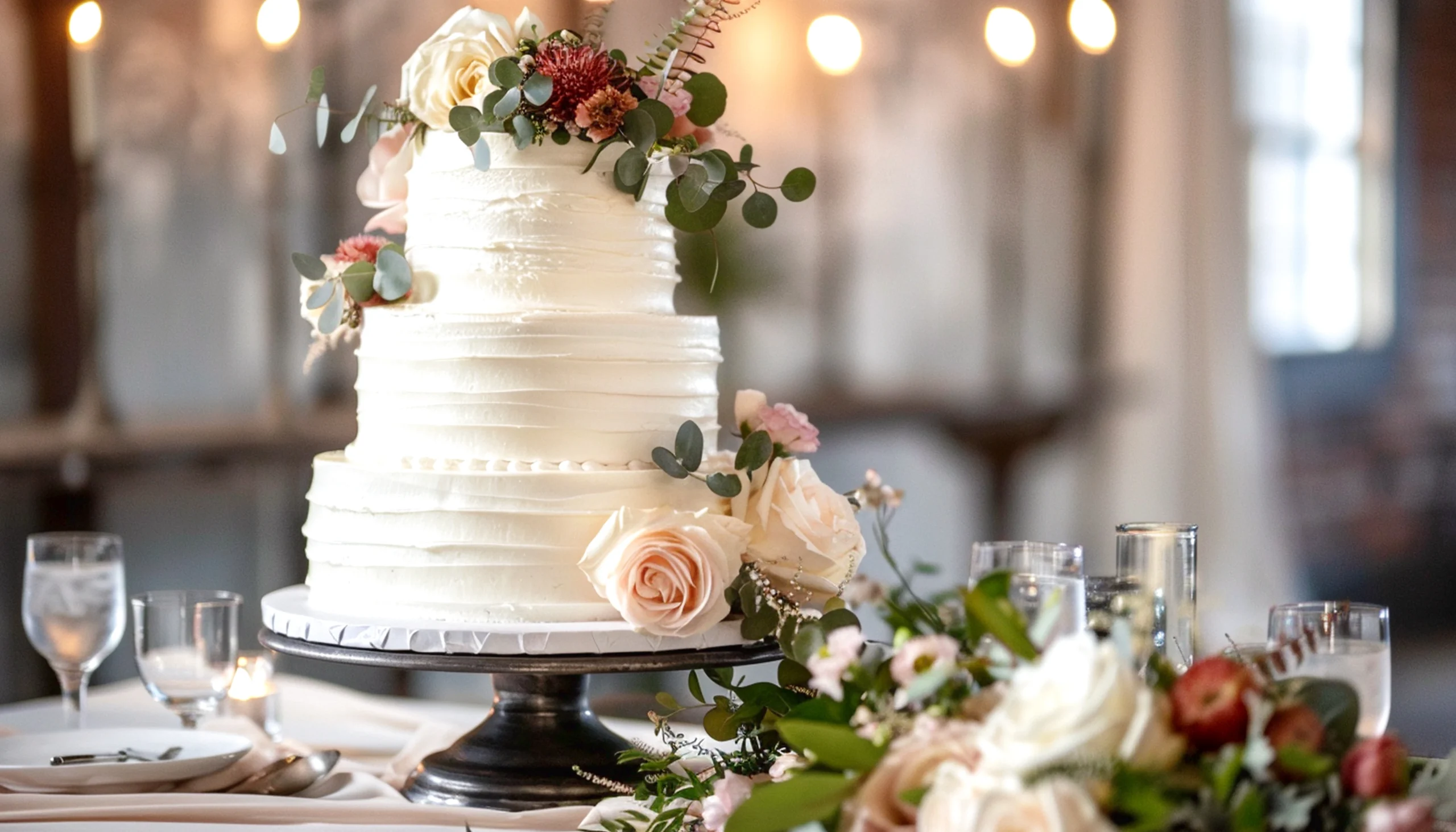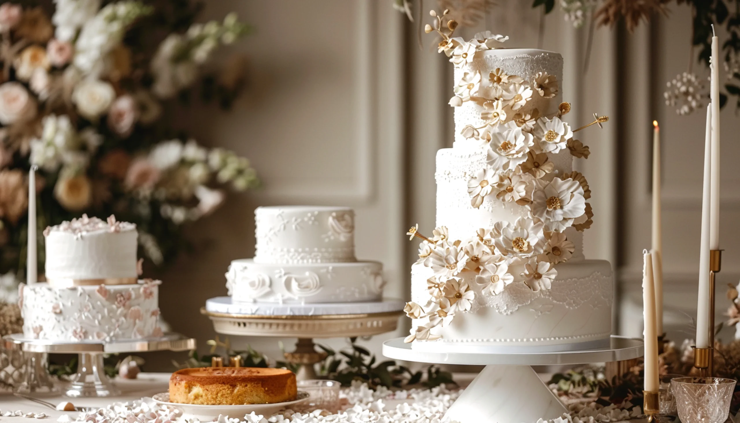 We start with a personal consultation where we talk through your love story, venue, color palette, florals, and—most importantly—your wedding gown. The gown’s fabric, lace, and silhouette become the inspiration for your cake’s overall look and feel.